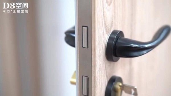 D3空间的木门设置3个合页,稳定性比2个合页的更强。可以起到固定门的作用,防止木门过沉变形;门锁处多是运用磁吸静音锁,增强静音效果。