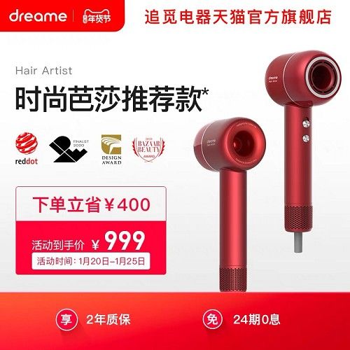新年新气象,追觅科技吹风机让你新春“红”运从“头”开始,美美地迎接新年。在此次天猫年货节中,下单追觅Hair Artist高速吹风机(红蓝款)立省400元。作为时尚芭莎推荐款,这款搭载了11万转高速马达和千万级负离子低温喷射技术的高速吹风机,凭借强劲气流可快速带走发丝表面热量及水分,在充分保护发质的前提下实现“低温速干”、“负离子润发”效果,同时搭配不同吹风模式和风嘴配件,让你随心所欲打造发型,助你靓丽过牛年。
