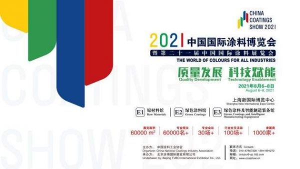 目前展会的前期工作正在紧张有序地展开。为了进一步宣传展会,扩大影响,2020年12月1日下午,中国涂料工业协会携承办方北京涂博国际展览有限公司在北京召开了新闻发布会,官宣了CHINA COATINGS SHOW 2021的筹备近况。2021中国国际涂料博览会暨第二十一届中国国际涂料展览会将于2021年8月6-8日在上海新国际博览中心盛大启幕,展会的主题是“质量发展,科技赋能”,三大展馆涵盖涂料全产业链E1馆 原材料馆:涂料、油墨、黏合剂用树脂、颜填料及相关的原材料、助剂、溶剂等;E2馆 绿色涂料馆:各种涂料(水性涂料、无溶剂涂料、高固体分涂料、粉末涂料、辐射固化涂料等环境友好型涂料、建筑涂料、工业涂料、特种涂料、高性能涂料)等;E3馆 绿色涂料及智能制造装备馆: 绿色涂料、生产/包装设备及装置;涂装工具/涂装设备;环保处理设备;检测设备、分析仪器、质检及研发仪器;安全、健康、环境及其他服务;表面处理设备及产品;地坪材料。