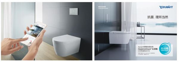 在全球遭遇重大挑战的时刻,消毒与抗菌已经成为生活和社交必不可少的基本习惯。针对社会大众对于个人及公共卫生要求不断精细并升级的需求,Duravit同样于去年年中在上海发布升级整体产品抗菌科技的战略计划,宣布将在中国市场销售的所有座便器全部采用HygieneGlaze®沁洁釉,把具有行业开创性的“抗菌”新标准计划正式推进至下一阶段。与普通陶瓷釉相比,HygieneGlaze®沁洁釉具有更为出众且迅捷的抗菌效果,可在24小时抑制陶瓷表面99.9%的细菌,并可长时间保持座便器的卫生清洁。这一里程碑式的成果,带动“抗菌浴室”设计理念的全新潮流,更树立了行业卫生新标准。Duravit与sieger design合作开发的两个高端家具系列Viu/Xviu和Happy D.2 Plus,同样获得了广大中国消费者的青睐,推动整体浴室家具、水龙头及浴室配件品类销售额的增长。