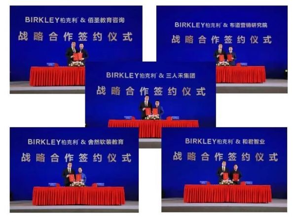 接下来,便是万众瞩目,多方联合的签约仪式,柏克利与和君智业、三人禾集团、佰圣教育咨询、舍然软装教育及布道营销研究院签署合作,柏克利将与业内最为顶级的服务机构共同成长,齐头并进,书写新的篇章。