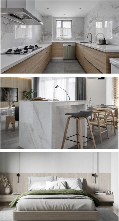 原木与大理石结合的特色将设计的元素、色彩、照明、原材料简化到最少的程度,但对色彩、材料的质感要求很高。因此,整体的空间设计通常非常含蓄,往往能达到以少胜多、以简胜繁的效果。