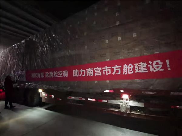 收到安装需求后,海尔智家河北分公司和天津分公司两地联动,提供产品到服务,星夜驰援南宫,首批500台自清洁空调已于20日抵达。
