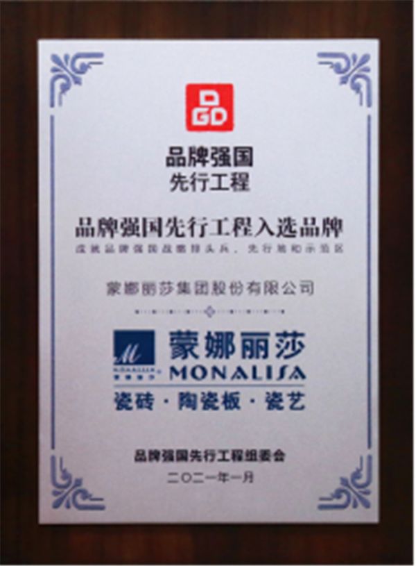 1月21日,由品牌强国先行工程组委会主办的以“品牌强国,广东先行”为主题的首届品牌强国先行论坛开幕式在国家商标品牌创新创业(广州)基地举行。其中,蒙娜丽莎入选“品牌强国先行工程”,在现场接受颁奖。