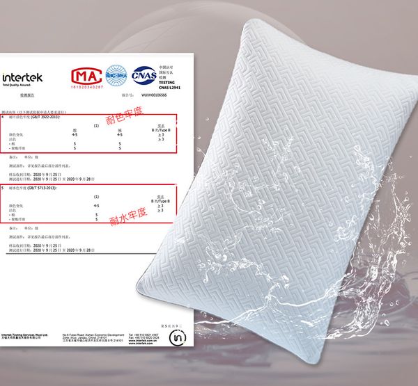 同时,泰普尔还获耐色牢度、耐水牢度认证。耐色牢度经过质检,枕套不易掉色,方便清洗,接近自然,耐磨耐洗,让睡眠洁净无忧。