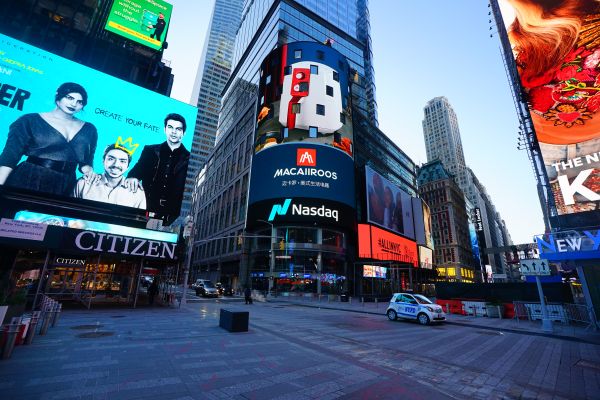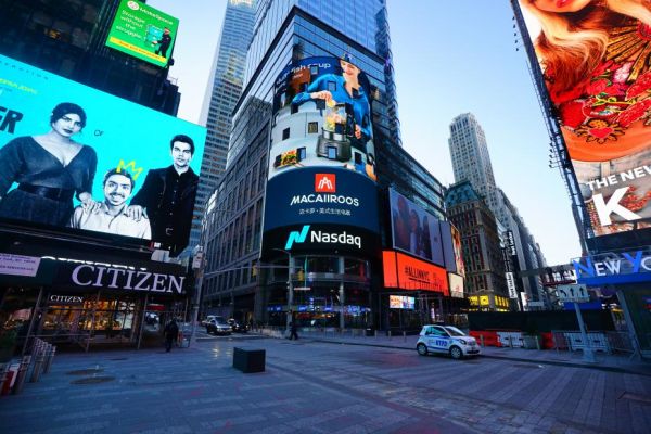 世界瞩目,迈卡罗亮相纳斯达克大屏