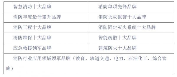 由中国安全产业协会消防技术创新专委会、应急救援产业网主办、由相关行业协会指导及支持的中国消防行业十大品牌评选活动,是一年一度的消防行业盛事。参选企业将通过报名、网络初选、复选、专家用户评审的方式,依据综合实力及市场占有率等客观、科学评审体系,激烈角逐各大奖项。十大品牌评选活动不仅是简单的行业表彰活动,让企业在接受嘉奖的同时提高品牌知名度和市场占有率,更重要的是,中国安全产业协会消防技术创新专委会、应急救援产业网汇集行业影响力和媒体高频曝光度,为企业铸就成长之翼,在回顾光辉成就的同时找到发展方向,为未来布局谋篇。