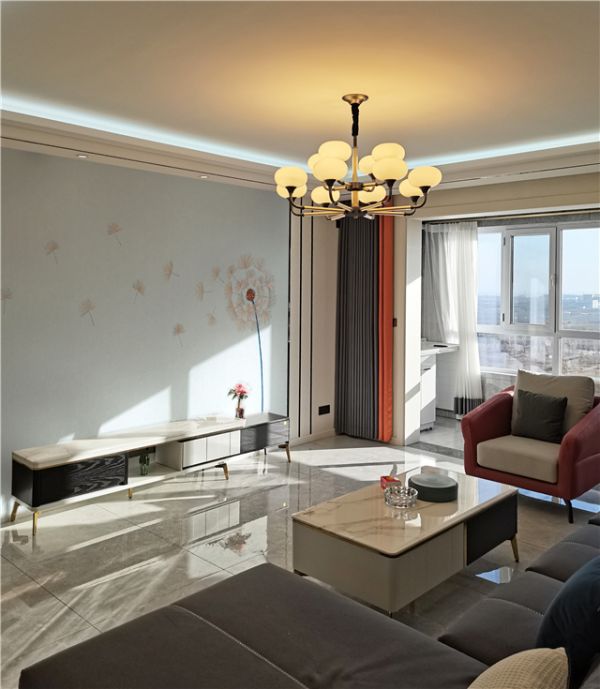 现代主义也成为功能主义,是非常注重居室空间布局与实用性完美结合。合阳心怡苑业主家就以此风格为基础,干净利落的线条,简洁美观的装饰,空间整体采用白橡色作为主色调,具有超凡脱俗的“阳春白雪”既视感。电视背景采用水色的跃律泊风,颜色上与整体空间相呼应。此外,独特的提花+刺绣工艺,针法细腻,灵动逼真,将蒲公英随风飞舞的姿态跃然于“墙面”之上,带来别样的家居生活新体验!