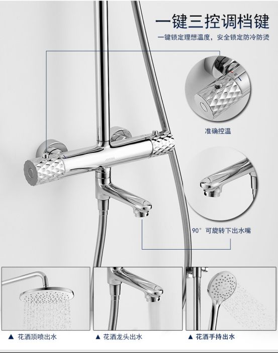 你是否也有过这样的经历,就是当我们忘情、酣畅的淋浴时,会不小心被使用过久而发烫的开关把手烫伤,这样的潜在危险该如何才能消除呢?别担心,安华N3SH655花洒防烫设计,一键锁定,把温度隔绝在内,安全防烫。