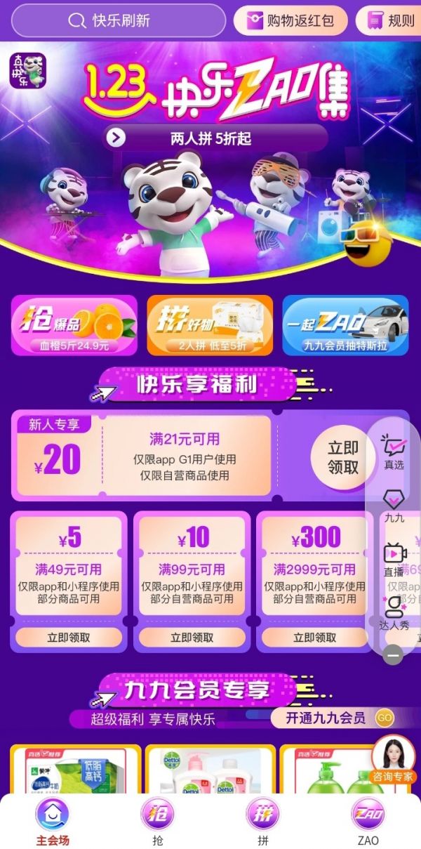 在“真快乐”APP“快乐ZAO集”超级年货节上,不仅有抢爆品、拼好物,一起ZAO的娱乐新玩法。升级“真快乐”九九会员,还可享真选商品折上折、大额专属折扣券、爆款5折秒、抽特斯拉使用权大奖等多重硬核福利。此外,九九会员还有99天保价服务,让您放心买,无后顾之忧。活动期间,还可以2人8.9元拼会员,轻轻松松实现首单回本,再买即赚!