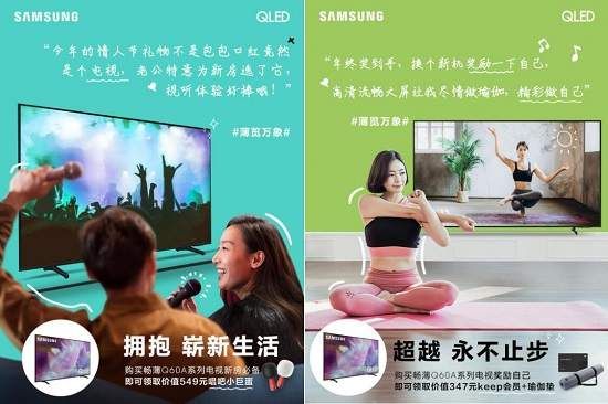 新品上市期间,购买三星畅薄QX1系列QLED电视,即可领取爱国宾康体检卡、keep会员和瑜伽垫、唱吧小巨蛋、电视盒子等丰富好礼。