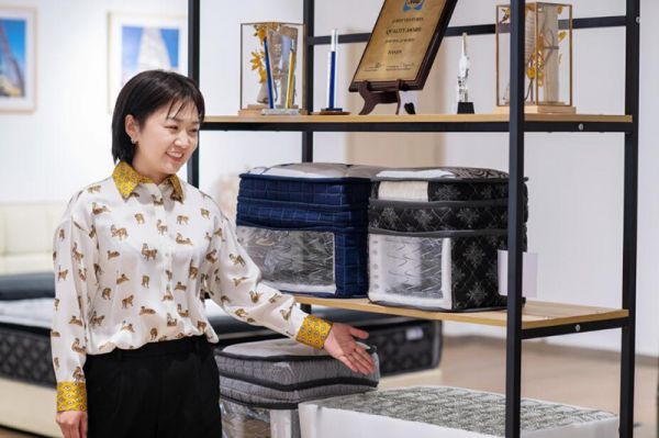 (图:丝涟天津工厂展厅展示丝涟高品质床垫)