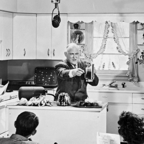 上世纪40年代,一位销售人员正在电视购物节目上推销料理机