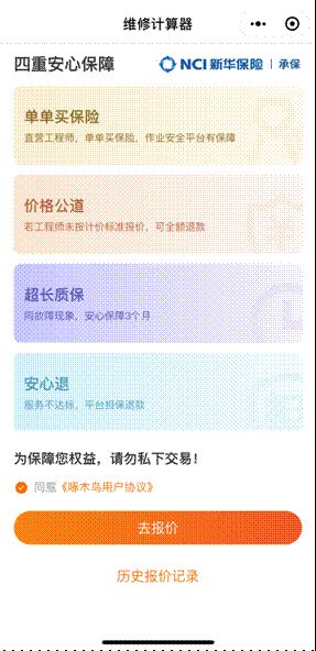 (啄木鸟维修计价器页面)