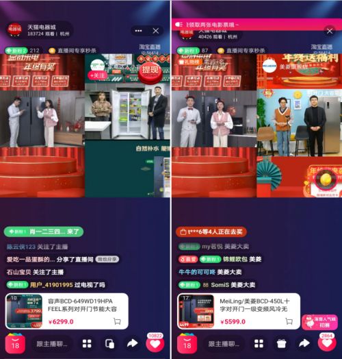 同时,美菱、容声,品牌总裁“空降”直播间,与天猫实现连麦互动,在线发放“总裁年终福利奖”,在送上爆款产品的同时,送出了年度福利巨惠。