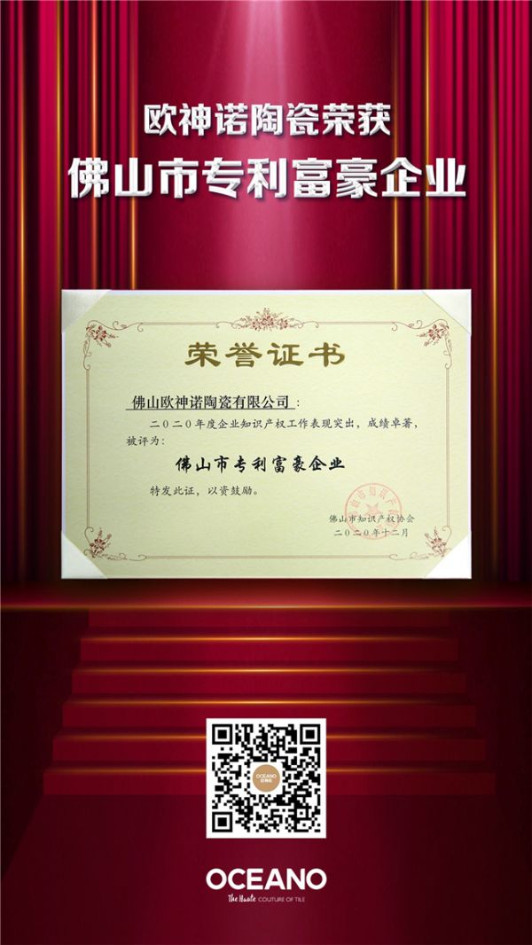 富豪!欧神诺荣获“佛山市专利富豪企业”称号!