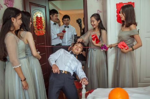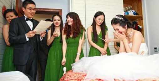 8、门外的新郎听好了,要想带妞走,留下买妞钱。不要一千不要一万,碎银有几两给几两。