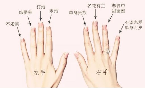3、右手中指代表名花有主,谢绝其他仰慕者的追求。