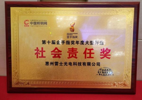 雷士照明凭借高度的社会责任感荣获“社会责任奖”。疫情期间雷士照明第一时间挺身担当“逆行者”、以及积极参加中国半导体照明扶贫促进项目及援藏偏远地区光伏项目等公益活动。雷士照明不遗余力肩负起行业领导者的责任和使命,为行业发展和社会贡献力量。