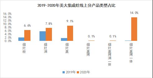 今年集成灶市场开始出现了产品结构重心持续向蒸烤类偏移的现象,尤其蒸烤一体机,不论线上还是线下,产品份额和均价都在稳步提升。其中20000元+的高端价位产品占比更是呈现出大幅增长趋势,成为目前市场高端化升级的最大力量,未来发展不可估量。2020年,蒸烤一体机显然成了备受消费者追捧的“香饽饽”。据奥维云网(AVC)监测数据显示,美大蒸烤一体集成灶在线上市场占比为14%,线下KA渠道占比为21.7%,均处于行业领先地位。美大在蒸烤一体机上的发力,对于推动集成灶行业产品结构升级,有着积极的意义和明显的效果。