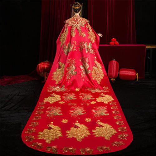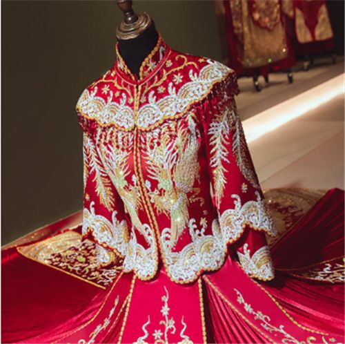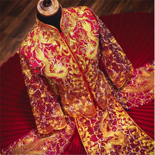 还有一点区别也就是在款式上,秀禾服的裙摆属于哪种比较松散的,感觉有点像伞裙的样子,但是龙凤褂也属于哪种直筒款式的,因此对于一些身材包容性的来说秀禾服要比龙凤褂强很多。