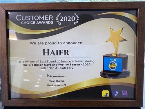 1月17日,海尔印度获得2020 Flipkart“最佳服务奖”,这也是海尔印度连续第二年获得该奖项。Flipkart是印度本土最大电商平台,获得它的肯定体现了海尔印度服务口碑引领地位。