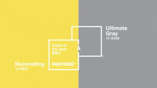 2020年末,全球色彩权威机构潘通Pantone发布了2021年的代表色——分别为亮丽黄(Illuminating,色卡编号13-0647)和极致灰(Ultimate Gray,色卡编号17-5104),潘通希望这两种色彩的组合可以为人们带来希望和力量。