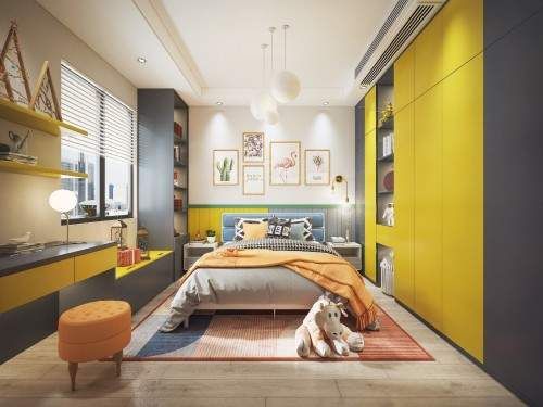 在全友「拾光新贵」+定制系列的青少年房中,亮丽黄与极致灰互相衬托,黄色不再刺眼,灰色也不再无趣,空间色彩层次更丰富多彩,达到了一种舒适的平衡。对于追求个性的用户群体而言,通过定制来灵活配比家居色彩,能打造出更合适、更美好的居住空间。
