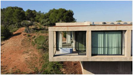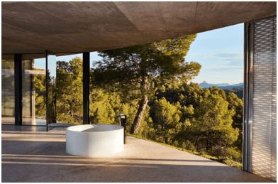 在加泰罗尼亚 Matarrañas 山脉的 “Solo House II ” 坐落在自然平原上,视线范围内还可以看到海。为了把周围环境加入到设计中, 设计师们设计出圆形的草图,在这里造出了一幢不分前后的房子,可以达到360度全景效果。相同的每一面和完美的圆弧形,整幢房子与绿色的大自然融为一体。