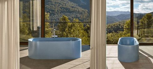 雾霾蓝色的 BetteLux Oval Silhouette 成为了完美的布景,特效色彩“雾霾蓝”呼应着蔚蓝的天空,为颜色简单的房间增添了一抹轻快的感觉,浴缸整体线条自然流畅,设计简约大气。基本的有机设计,加之极其精致的边缘,增添了高雅气质,让浴室成为具有梦幻色彩的空间。