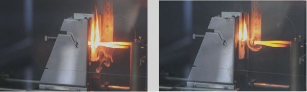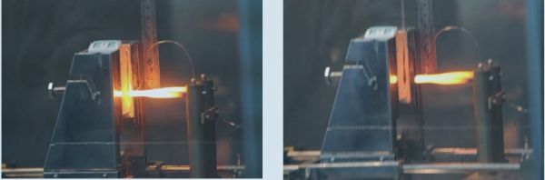 (不同壳体材料在摄氏960度环境下灼烧90秒)