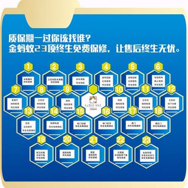 保障承诺:金蚂蚁家装公司会为住户提供24小时全天售后服务,23项重要节点终生免费质保。