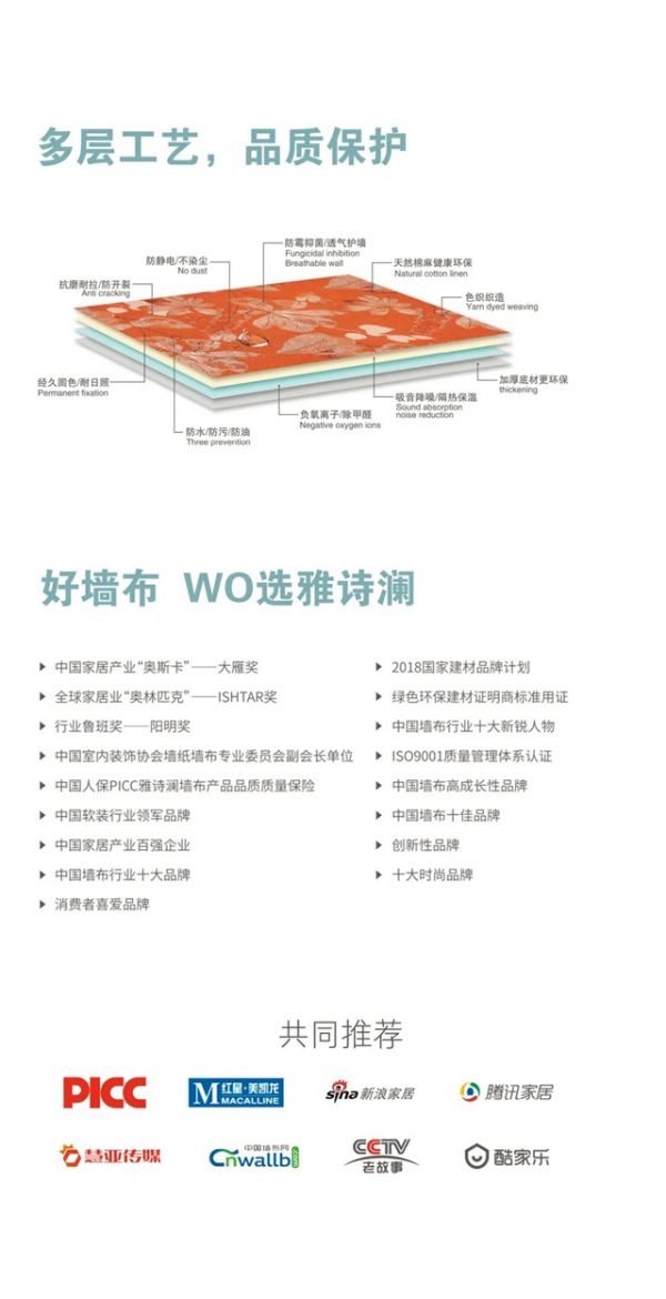 作为墙布全产业链工厂品牌,雅诗澜支持墙布批发和墙布代理,将经销商利益放在第一位,为家人们送去众多福利!