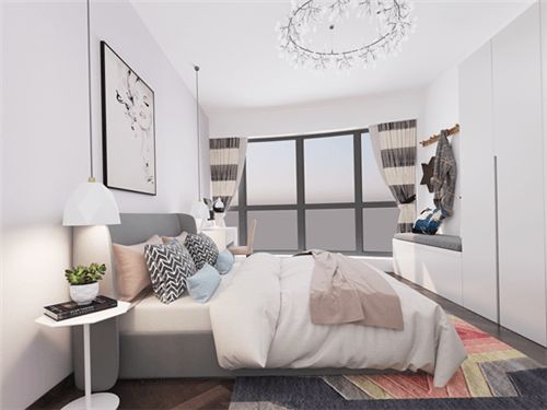 在客厅中运用了大面积中国风玉脂白和哑光棕色。玉脂白的沙发与哑光棕色调的墙体色调相互呼应营造出奢华感。主卧由业主居住,因此在色调上设计师选择了中式色调长城灰,墙壁上的装饰也较为简洁,让整个主卧看上去更加沉稳。姐姐的房间以白色与粉色为主打色调,妹妹的房间则是以灰白色调为主,弟弟的房间中装修则更偏向海军风,将小孩子的内心世界具象化,让孩子们快乐长大。