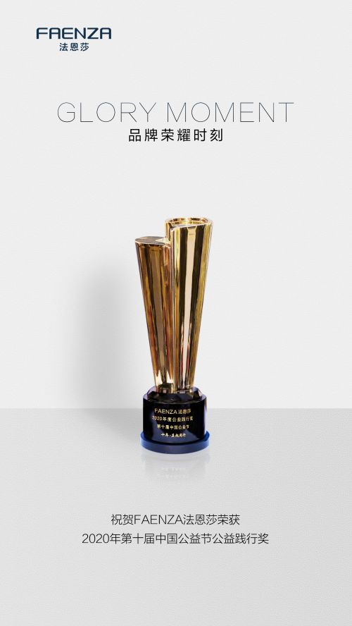 2021年1月29日,FAENZA法恩莎在由数央网、数央公益联合众多媒体共同主办的第十届中国公益节暨“十年”致敬盛典中,荣获2020年第十届中国公益节公益践行奖。