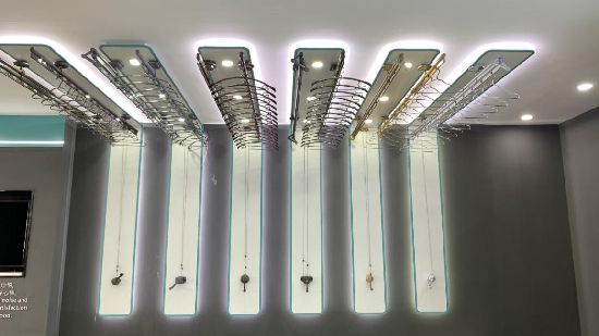 新展厅内陈列有多机型、多款式、多功能的智能晾衣机,还有手摇晾衣架、外飘晾衣架、落地晾衣架、家用梯等多种晾晒产品,产品丰富得应有尽有,可以说你想要的晾晒产品都可以在恋晴新展厅内尽情挑选,因为总会有让你喜欢的那一款!