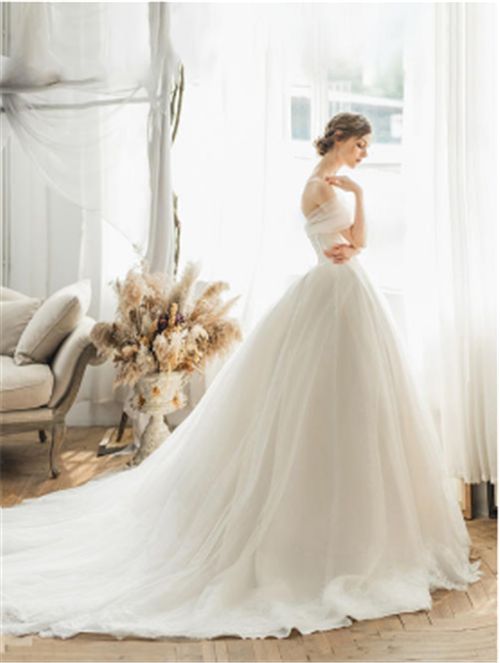 当新娘到了新郎家时,就要换好去酒店要穿的主婚纱,通常来说,白色的主婚纱大部分都是新娘的首选,也寓意白头偕老,当然如果你想要增加婚礼中的档次,你还可以直接选择一个拖尾的白色主婚纱,这样在灯光的照耀下还可以衬托出一种美的效果。