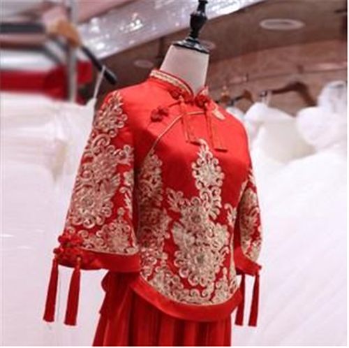 上衣一般都分为翻领或者是圆领,而其中也有立领的直接包含了高立领与低立领这两种,新娘脖子比较粗的话建议选择一些翻领的秀禾服,这样的领口还可以直接修饰你的脖子比例,这样看上去也会更加的纤细。