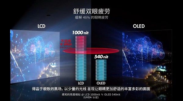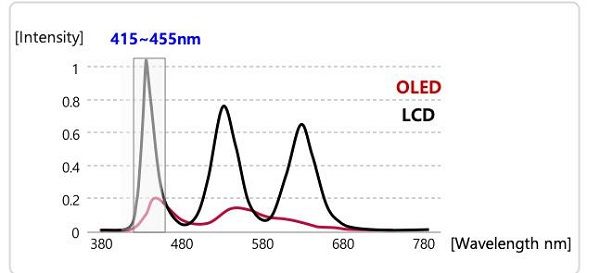 要知道,Mini LED本质依然是使用蓝色光源、产生大量有害蓝光的陈旧的LCD技术。非自发光的普通LCD电视蓝光排放量,都要比OLED自发光电视屏幕的蓝光排放量高很多,更不要说大幅提高亮度的Mini LED电视,有害蓝光会有多高了。