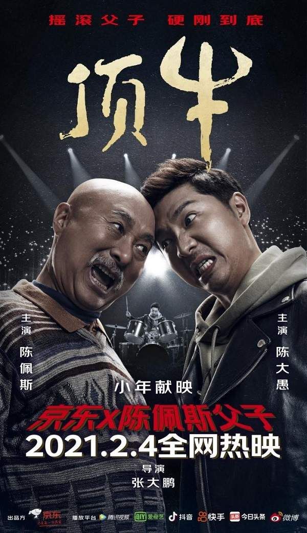 此次,京东贺岁档微电影《顶牛》最抓人眼球的是一套冲击力十足的预告海报。这组海报画面简洁,最吸引人的是陈佩斯父子对头顶牛的画面,陈佩斯陈大愚父子头顶着头怒目对视,誓要硬杠到底的架势。让人不禁猜测这对父子俩会在剧情演绎什么样的父子桥段?这场景除了直观的凸显了《顶牛》这一主题的字面意思外,又在细节处展现了一个“初生牛犊不怕虎”的愣头青和眼睛里透露着担忧的倔强老头儿,是大多数父与子的真实写照。而两个人中间是陈大愚作为乐队鼓手酣畅表演的场景,通过海报也就不难猜出微电影中陈大愚所饰演角色的“热爱”是什么了。各位看官可以细细的琢磨一下海报,确实很有意思~