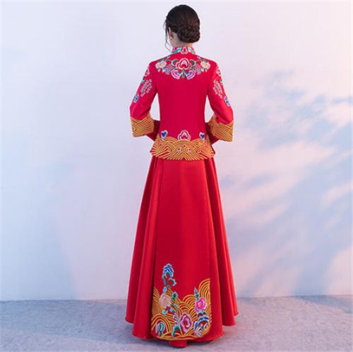 裙褂面料一般为真丝厚缎,要以人手一针一线使用金银线才能绣出各种图案,因此千万不可以水洗,如果说不幸弄脏的话,你可以尝试用湿布去处理局部,当然你也可以直接交给专业的干洗店处理也可以的。