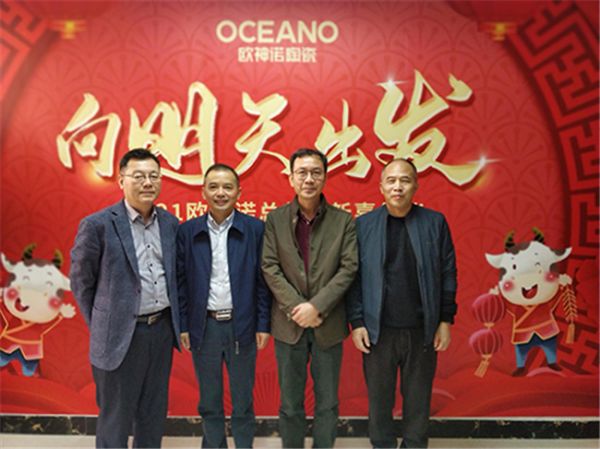 2月1日,广东省陶瓷协会会长陈环、副会长陈振广、秘书长王卫国一行莅临佛山欧神诺陶瓷有限公司,就专利奖项申报、产品研发创新等事项进行了交流与指导。欧神诺法务部总监赖伟标、中央研究院基础研发部经理柯善军、总经办主任刘可春、法务部副经理李翔林进行了接待。
