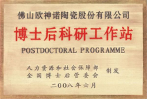 欧神诺是行业首批被获批设立博士后科研工作站的企业
