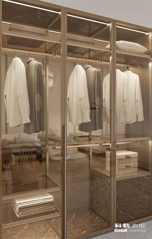 我们常常看到橱窗里闪烁光芒的奢华珠宝、博物馆里沉淀千年的珍贵文物,基于此,懂生活的人们甚至通过定制玻璃衣柜来珍藏自己的衣物,其中科勒定制衣柜就成为很多人的选择。科勒Kohler定制衣柜通过金色玻璃打造,搭配别具匠心的设计,让我们心爱的每一件衣服都能被大方欣赏,隐秘而珍贵。