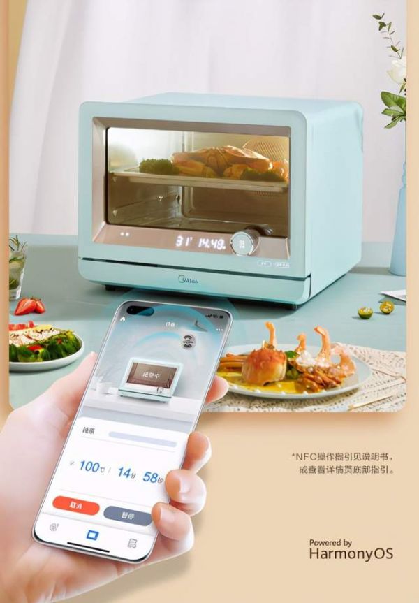 与普通蒸烤箱相比,美的燃卡料理炉S5 Mini不仅高颜值,而且还拥有“聪明”的大脑。作为首款搭载华为鸿蒙系统的料理炉,美的燃卡料理炉S5 Mini真正让烹饪构成化繁为简,其内置华为鸿蒙 OS NFC 智能感应芯片,用户只需将华为手机贴近机器,即可实现连接,内置的轻量化页面可提供海量云食谱,准备好食材即可一键启动,机器自动烹饪,整个过程无需实时照看。