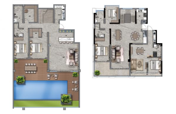 年长者不喜欢复式结构的,可以选择单层亚墅,有针对两代人合而有分的户型,也有适合大家庭团聚的户型。在享受别墅奢华居住体验的基础上,可避免别墅存在的上下楼爬楼梯意外及困难。AB善爱两代居,独立与相连的空间布局,保护了两代人的情感交流及个性独立。C平层康养居,大四居空间设计,适合大家庭亲情交流,更好的进行彼此照顾。同时,大平层的超高利用率,结合表面宽度大、深度短的设计优势,使得亚墅具有高渗透性、视野宽、多面观景效果。