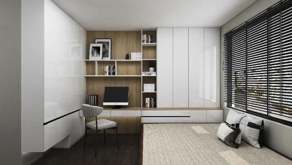 衣柜加入书桌功能更齐全,而且私密空间不会被人打扰,可以提升工作效率。