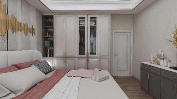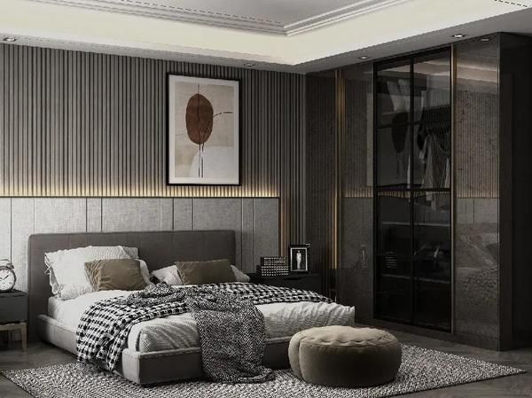 与入户门平行的墙面,打造一字型衣柜的布局,适合大多数卧室的户型。