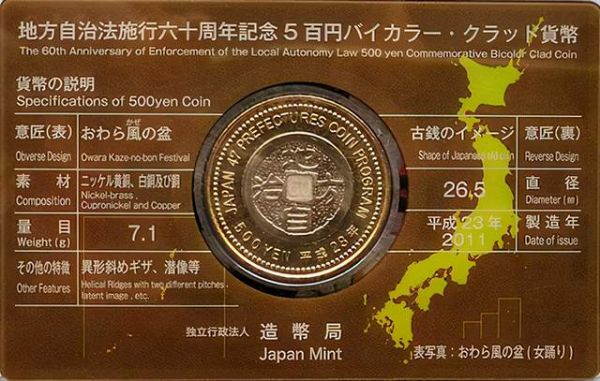 日本“地方自治法实行60周年”(富山县)纪念币装帧卡