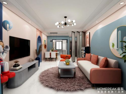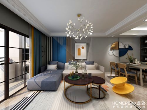 整个客餐厅的基调以浅色调为主,点缀以温暖的亮色,就能达到朴实中又有变化的效果。沙发的选择可以根据客厅空间的大小决定,中小户型可以选择一款三人沙发,搭配现代简约风格的时尚休闲椅以及组合式茶几,就可以很好的满足功能上的需求,同时不会过于占用空间,具有趣味性的茶几,还能为空间增添活力。